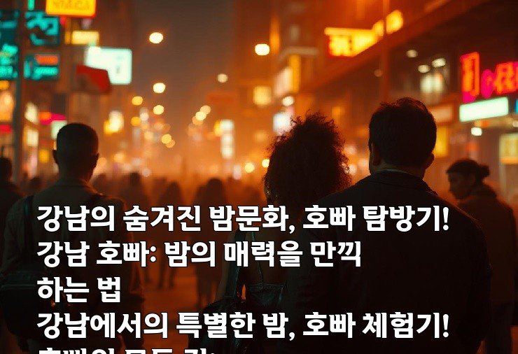 강남의 숨겨진 밤문화, 호빠 탐방기! 강남 호빠: 밤의 매력을 만끽하는 법 강남에서의 특별한 밤, 호빠 체험기! 호빠의 모든 것: 강남에서 즐기는 색다른 밤 강남 호빠, 당신이 몰랐던 비밀의 세계!